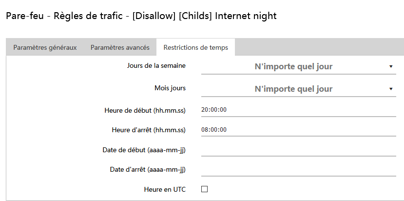 Pare-feu - Règles de trafic - Restrictions de temps
