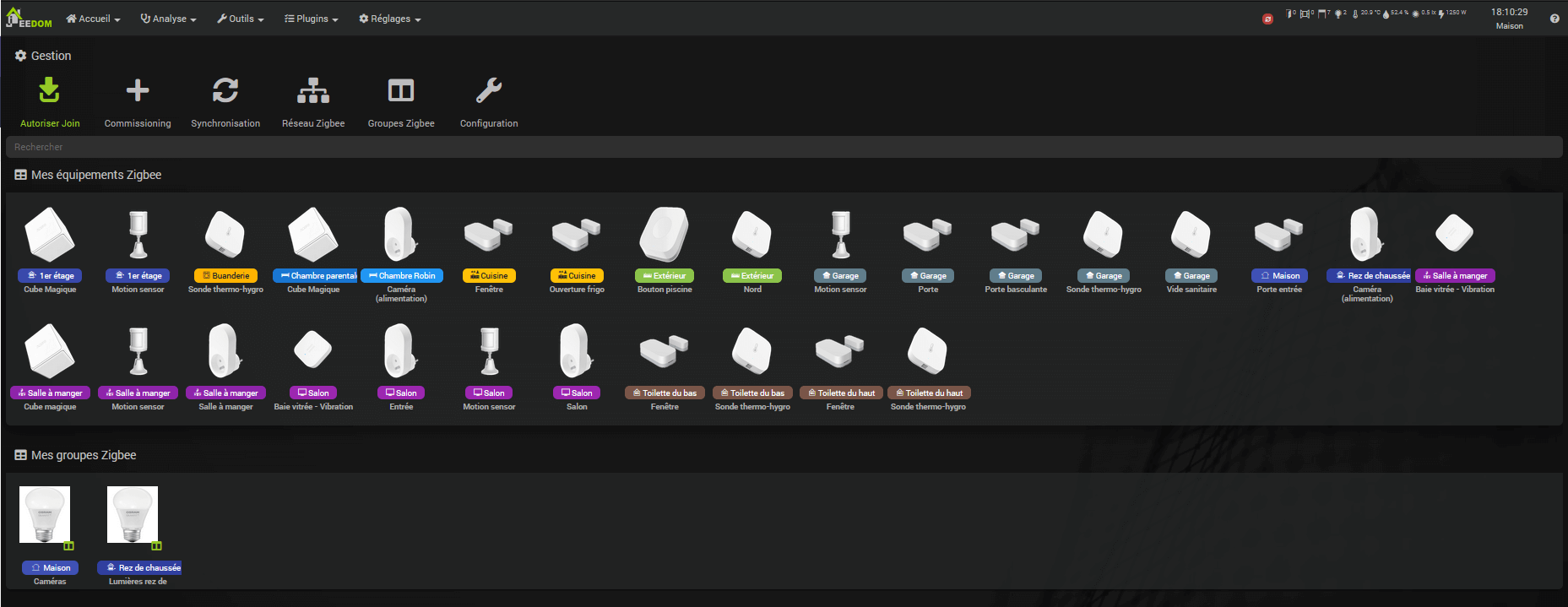 Liste de mes périphériques ZigBee