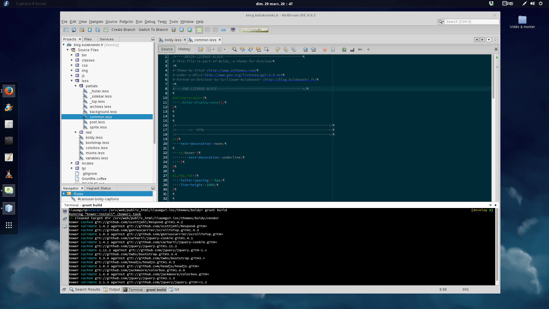 - Je ne fais plus de Java depuis longtemps. J’ai besoin d’un IDE qui permette de faire du web (CSS, HTML, JS, Less, etc…), PHP, Node, Ruby, shell. Or Eclipse devient de plus en plus inadapté pour cela.