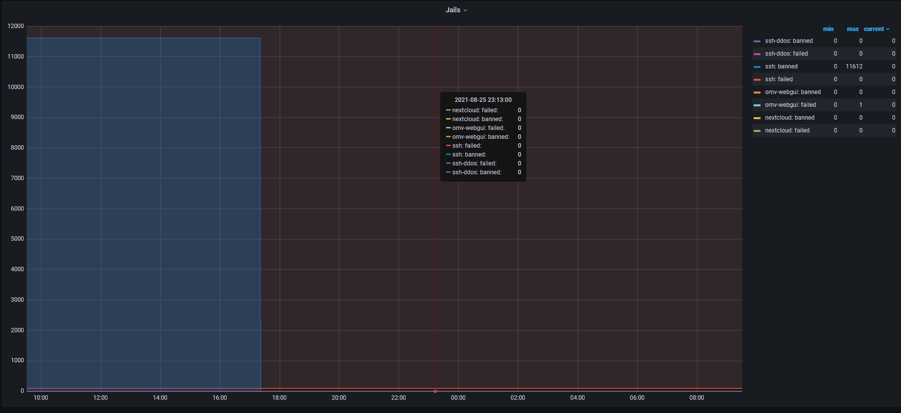 1. Ma « jail » ssh contient plus de 12.000 IPs… Ce qui est étrange, car mon serveur est depuis quelque temps d’arrière un VPN.